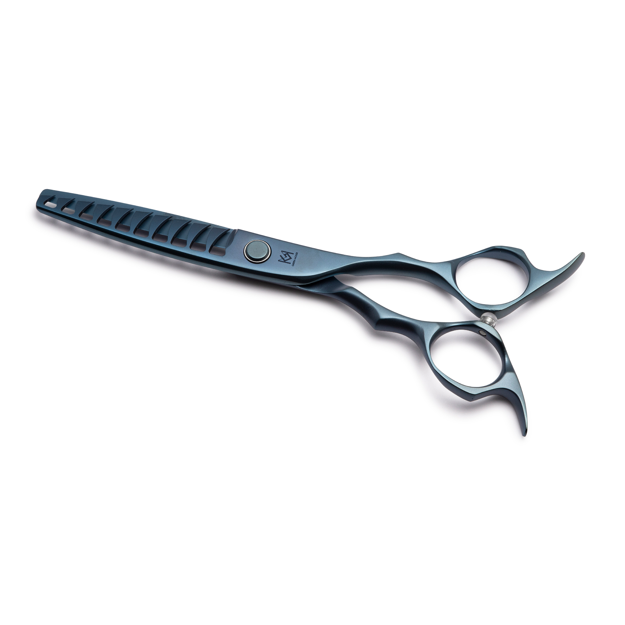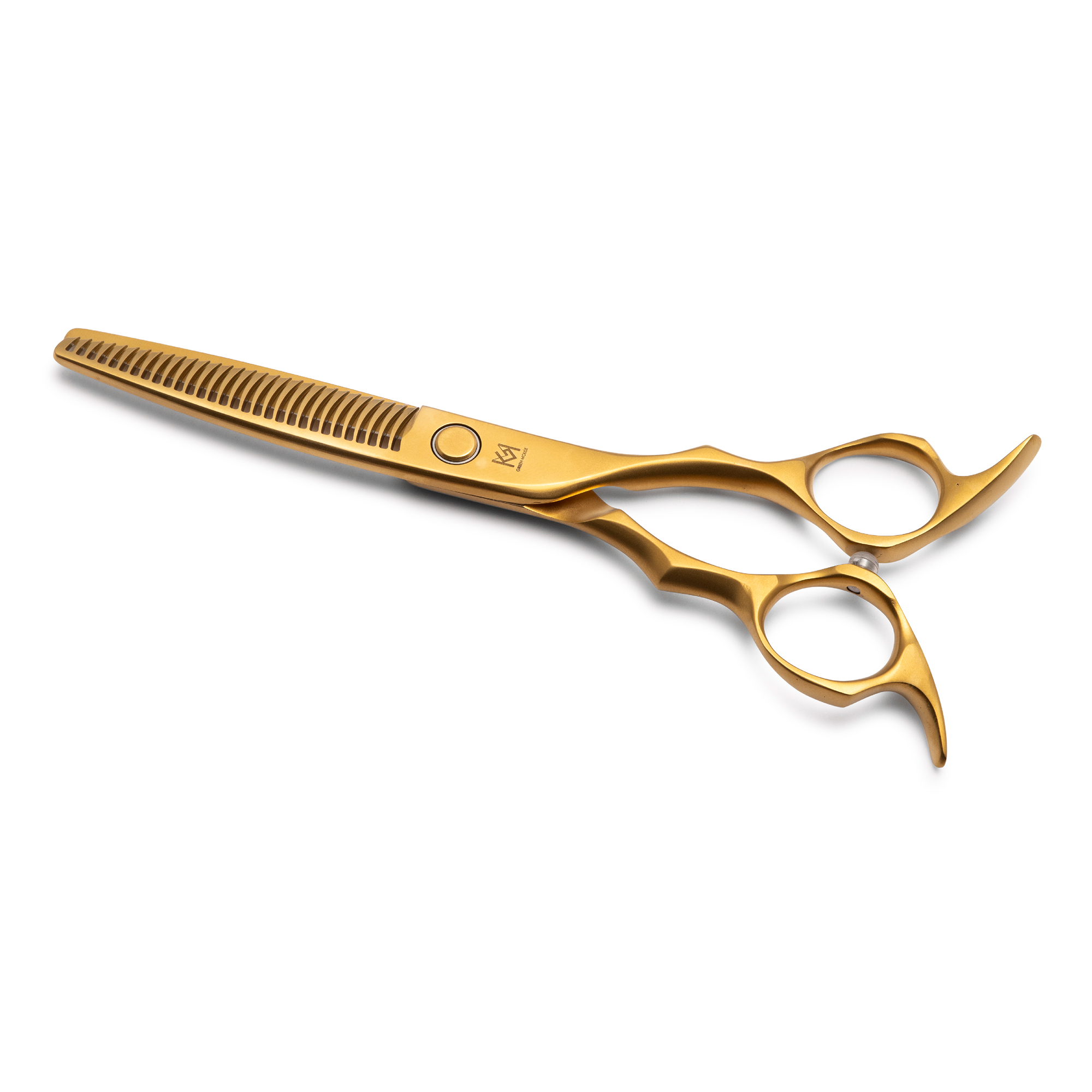 Green Mouse Matt‑L to eleganckie, symetryczne degażówki z matowym wykończeniem, stworzone dla stylistów ceniących komfort pracy i różnorodność efektów. Seria oferuje kilka wariantów cięcia: 30I – ok. 10 %, 30II – ok. 20 %, 30III – ok. 30 %, 23V – ok. 40 % oraz 10X – ok. 65 %, co pozwala dopasować narzędzie do różnych technik – od bardzo subtelnego blendowania po szybkie zdejmowanie objętości. Ergonomiczna konstrukcja i płynna praca sprawiają, że nożyczki te dobrze sprawdzają się przy długich sesjach w salonie, zapewniając wygodę i pełną kontrolę nad efektem.