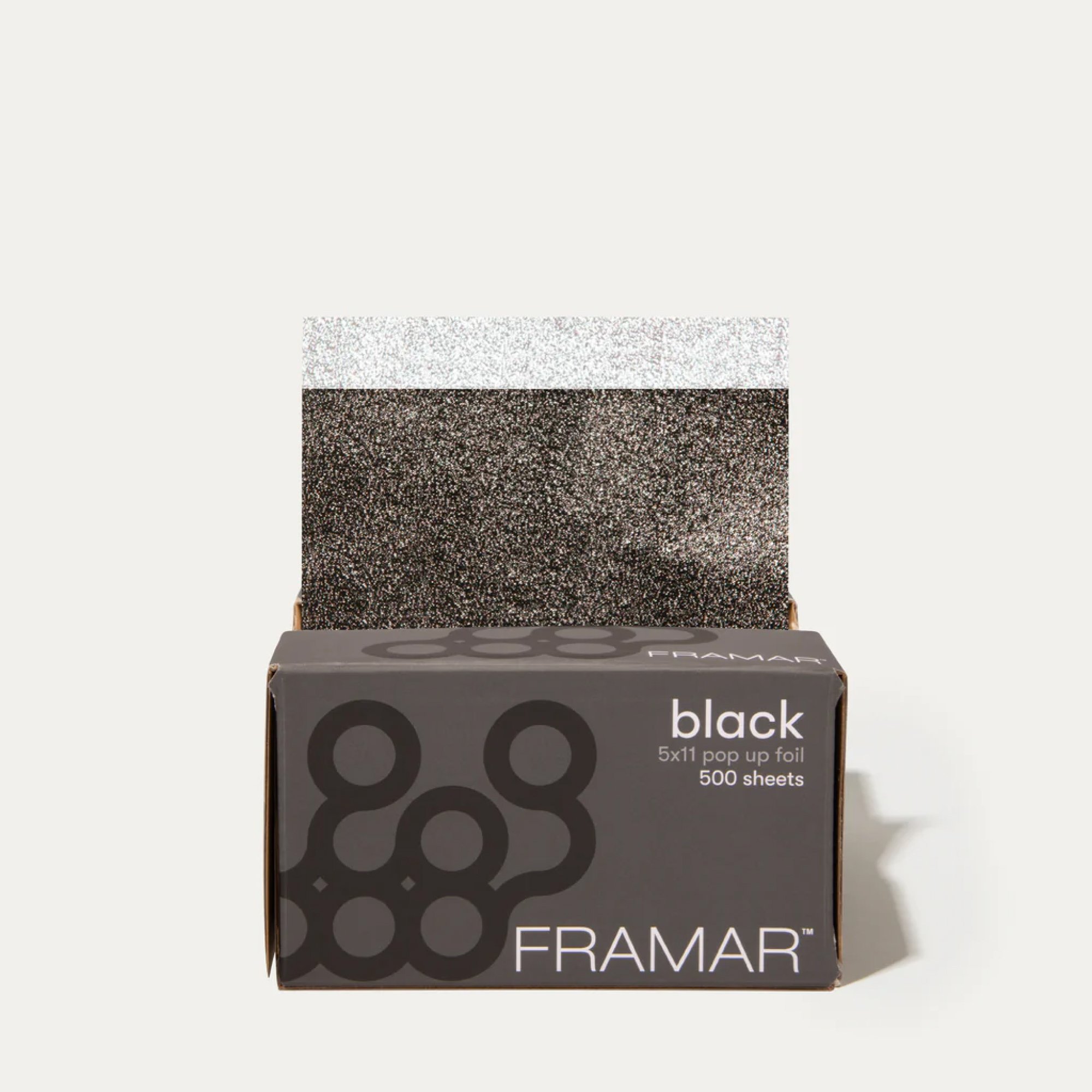 Framar Back in Black – 500 czarnych pasków folii 5×11″, embossowane, pre‑cut i pre‑folded, mocny chwyt, gotowe do użycia.